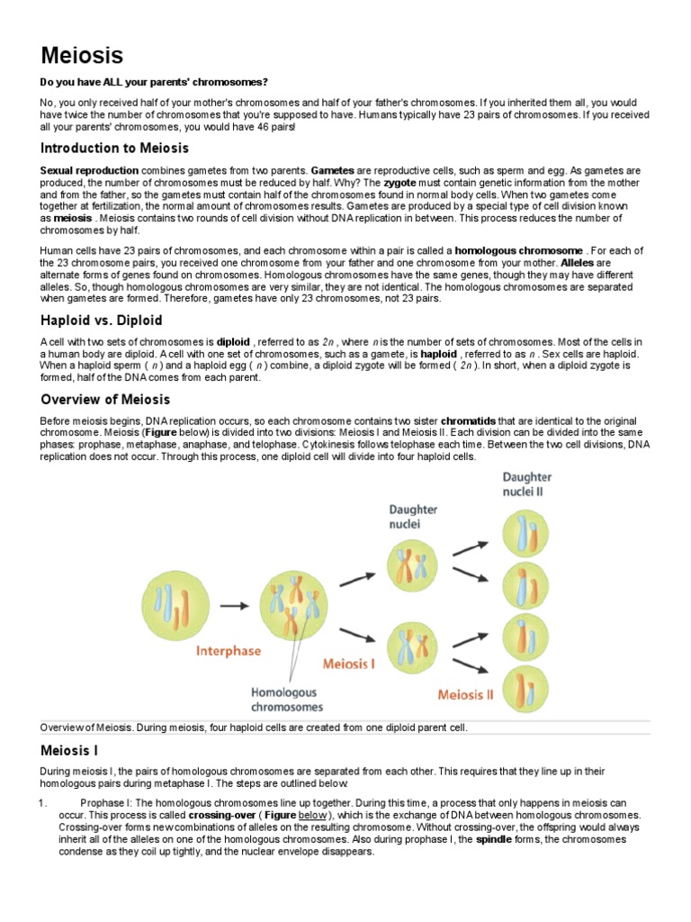 Cell division mitosis meiosis biology lecture. I was also a scientist for a few the review questions cover all of the material on the test: Name three reasons cells undergo cell division. The first answer is not clear. Based on the information provided, how do the purposes of mitosis and meiosis differ? When it won't offer you all the facts you should decide if you should pursue your business. Scientists call each group meiosis i and meiosis ii, but it is basically just two cell divisions. Daughter cells are identical to the parent cell how many eggs (ova) does a female retain from meiosis? Science olympiad mock test 1. Chromosomes carry genetic information in a molecule called dna. Home > language arts > reading comprehension > science reading comprehension > mitosis and meiosis. Meiosis i halves the number of chromosomes and is also when crossing. Mitosis versus meiosis worksheet directed reading section: